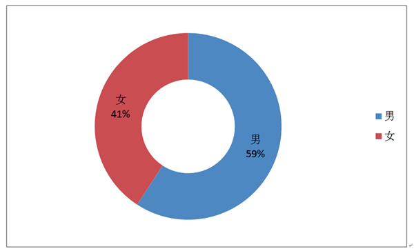 1、性别比例,如图1所示,男女比例为1.45:1。