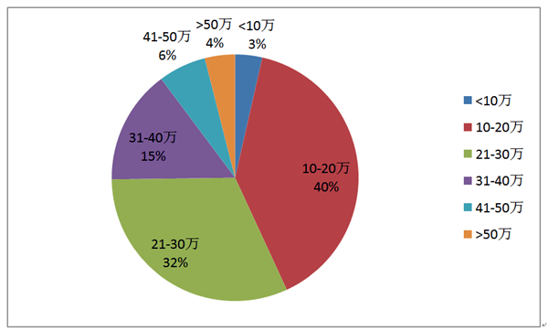 4、年薪情况,图4统计了2016年录取学生的年薪情况,年薪再10-20万和21-30万的占比最高,分别为40%和32%。平均年薪为25万。