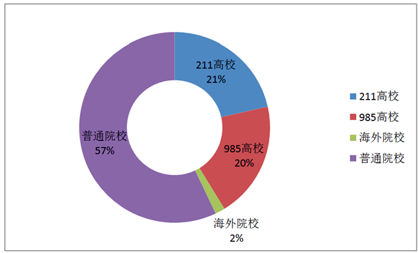 6、毕业院校分布,毕业于985高校和211高校的学生共占41%,57%的学生毕业于普通高校,毕业于海外院校的占到2%。