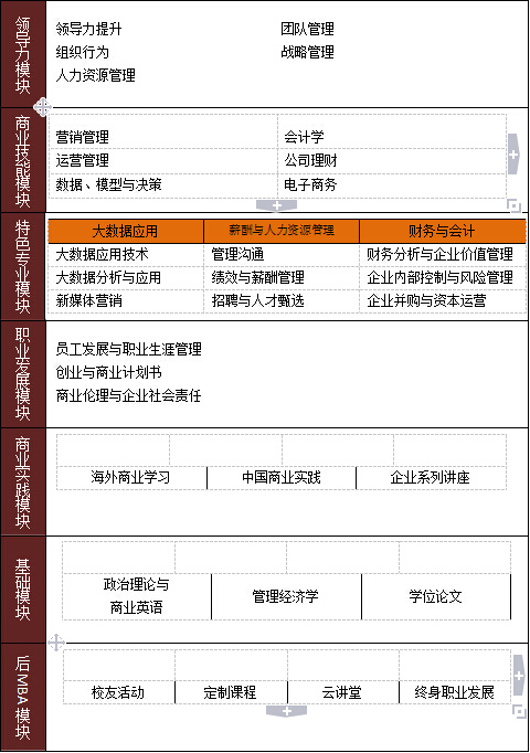 入学教育是为了帮助新生尽快掌握即将开始的MBA学习的技能和方法,具体包括领导力模块、团队训练模块和职业发展模块等。