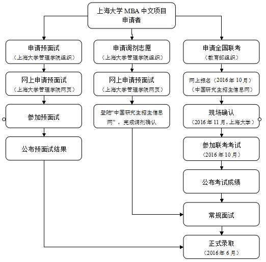 上海大学管理学院MBA中文项目申请与录取流程图: