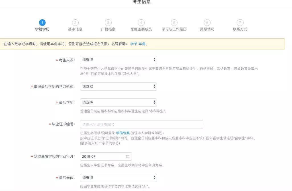 7.填写报考信息