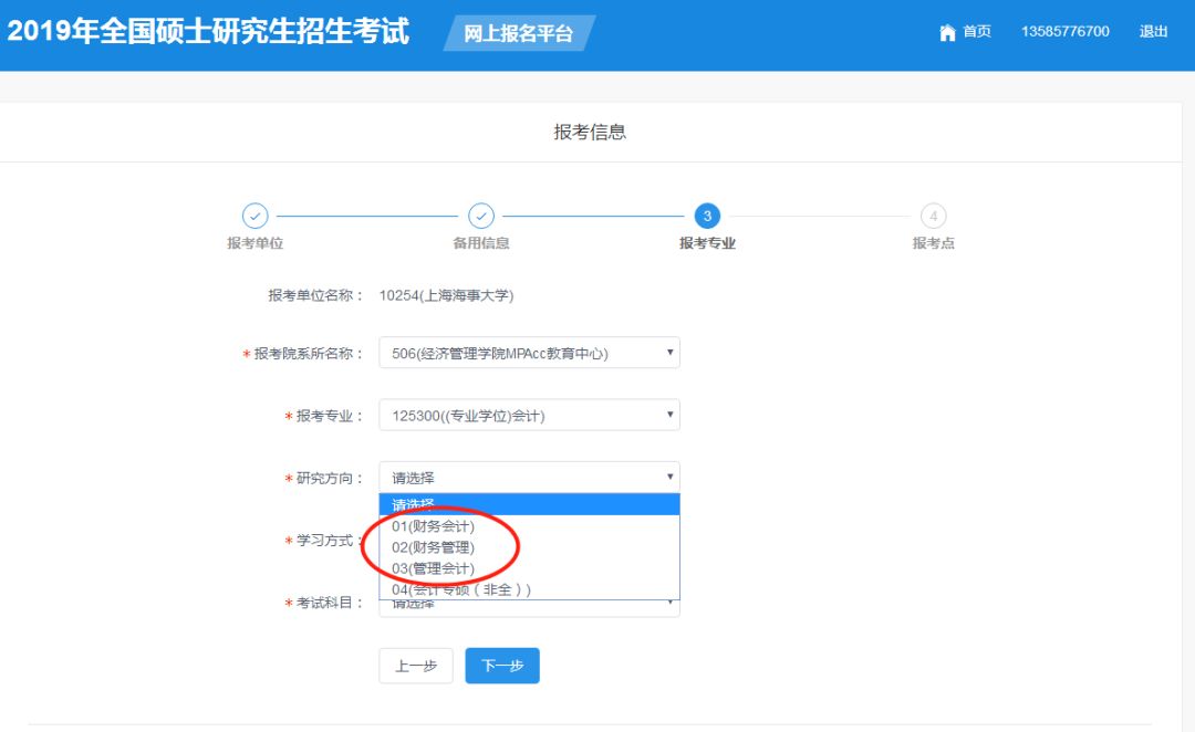 友情提醒:MPAcc全日制报考必须选填研究方向