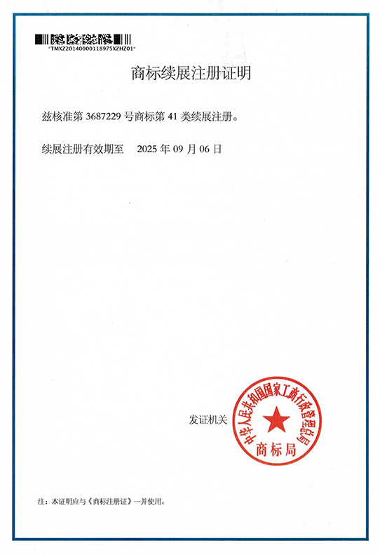下图为2015年国家商标总局颁发的商标续展注册证明。