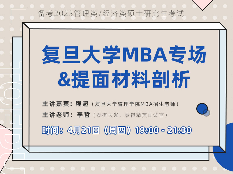 主讲嘉宾:程超老师(复旦大学管理学院MBA招生老师)