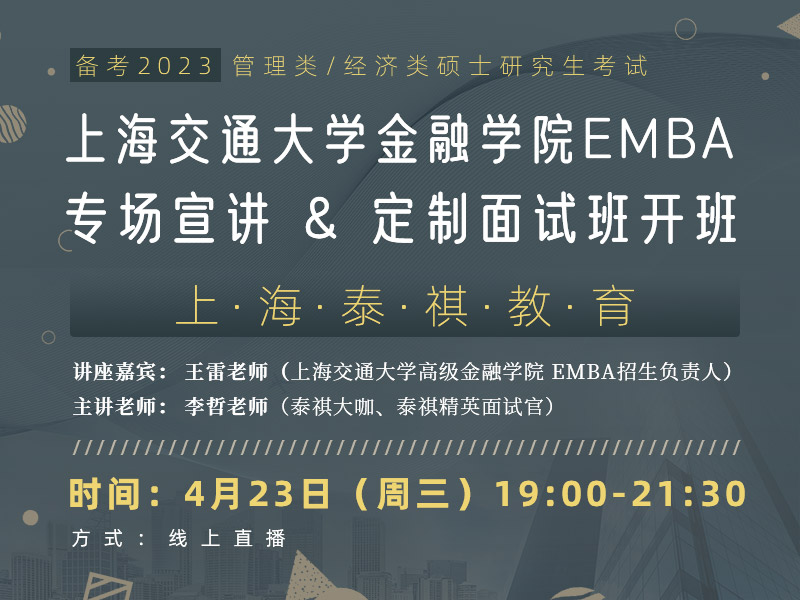 主讲嘉宾:王雷老师(上海交通大学高级金融学院 EMBA招生负责人)