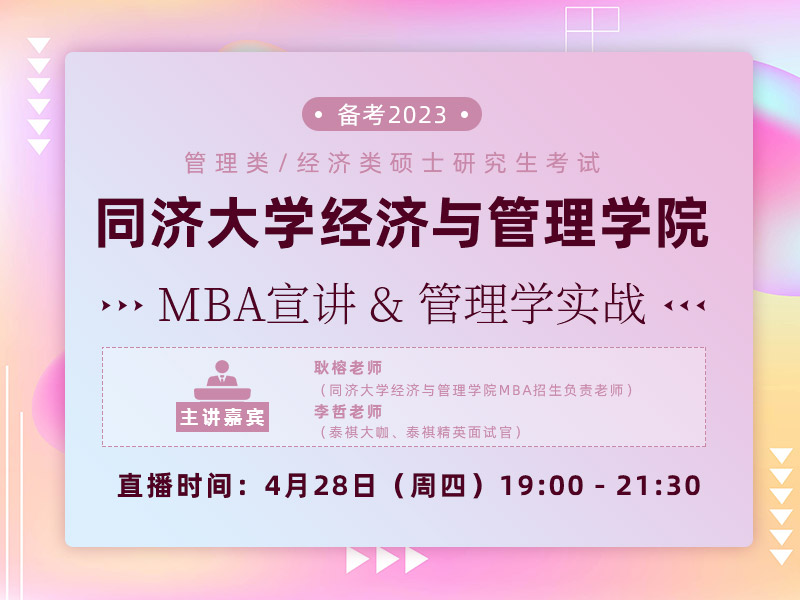 主讲嘉宾:耿榕老师(同济大学经济与管理学院MBA招生负责老师)