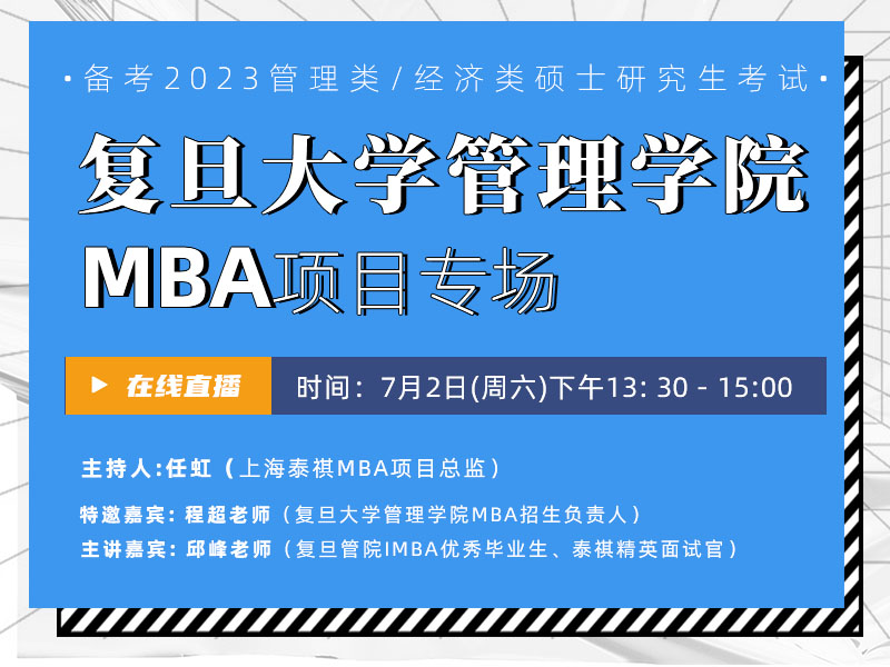 特邀嘉宾: 程超老师(复旦大学管理学院MBA招生负责人)