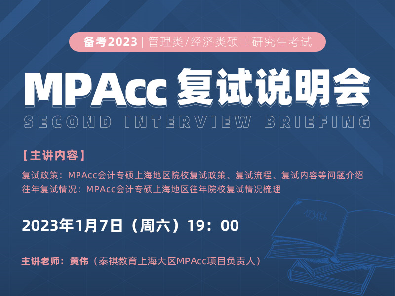 主讲老师:黄伟(泰祺教育上海大区MPAcc项目负责人)