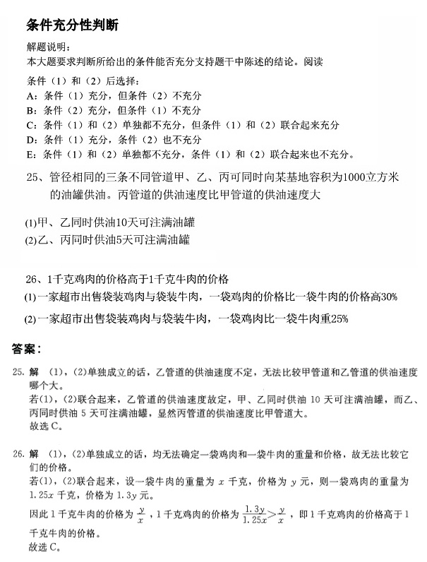 [解析]:若这天是星期一,前天是星期六。在星期六,张庄的人实际是说实话,但在星期一他要说谎,因此,他说“前天我说谎”。相反,在星期六,李庄的人实际是说谎话,但在星期一他要说实话,因此,他说“前天我说谎”。由于选项C 是“星期一或星期三”,只要有一天符合就为真。除了星期一以外,容易判断在星期三到星期六,他们的回答都是“前天我说实话”。若这一天是星期二,张庄的人说“前天我说实话”,李村的人说“前天我说谎”。若这一天是星期日,张庄的人说“前天我说谎”,李村的人说“前天我说实话”。所以,这天只能是星期一。因此,选项A、B、D、E 都是错的。